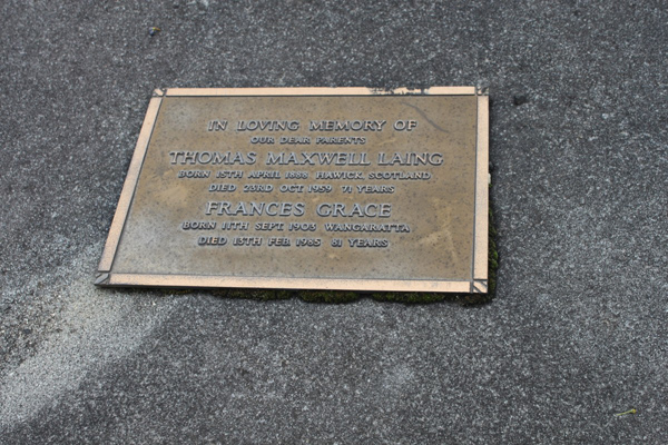 | photo | Laing | Thomas Maxwell | 1888 | 1959 | 71 | Frances Grace | ||