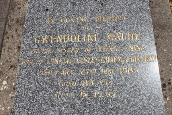 | photo | photo | Evans | Gwendoline Maude | 1986 | 83 | |