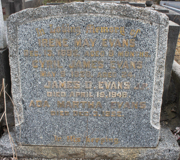 | photo | Evans | Irene May | 1892 | infant | ||