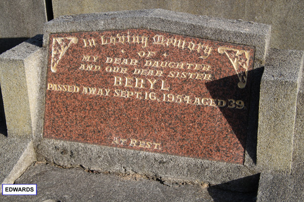 | photo | Edwards | Beryl Jane (former Dykes) | 1910 | 2008 | ||