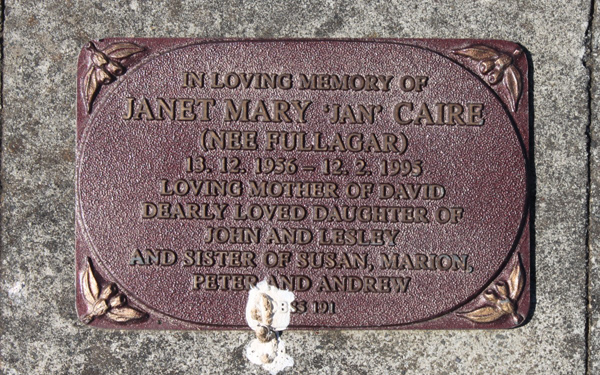Caire | Janet Mary (-Fullagar) | photo | 1956 | 1995 | David | ||
