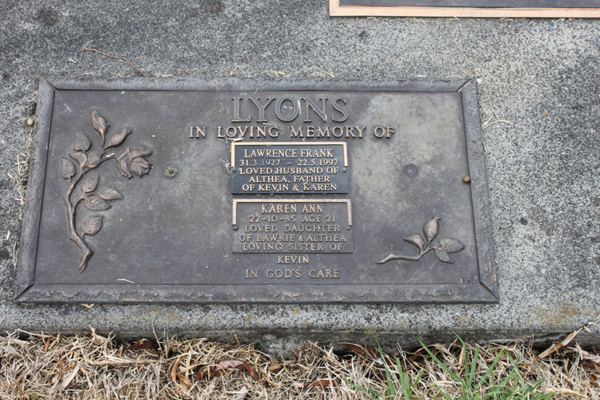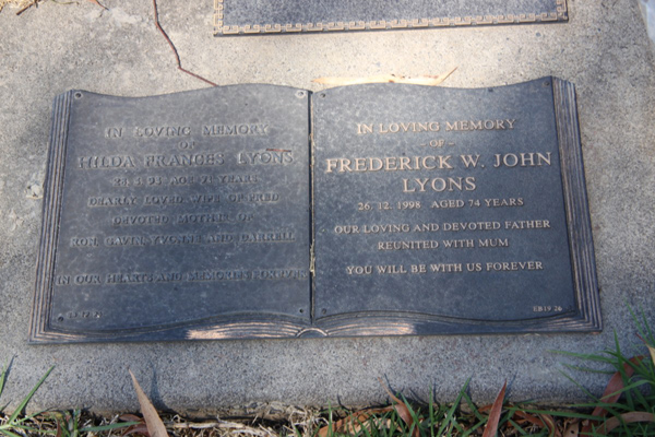 Lyons | Frederick W.J | photo | 1998 | 74 | Hilda F | ||